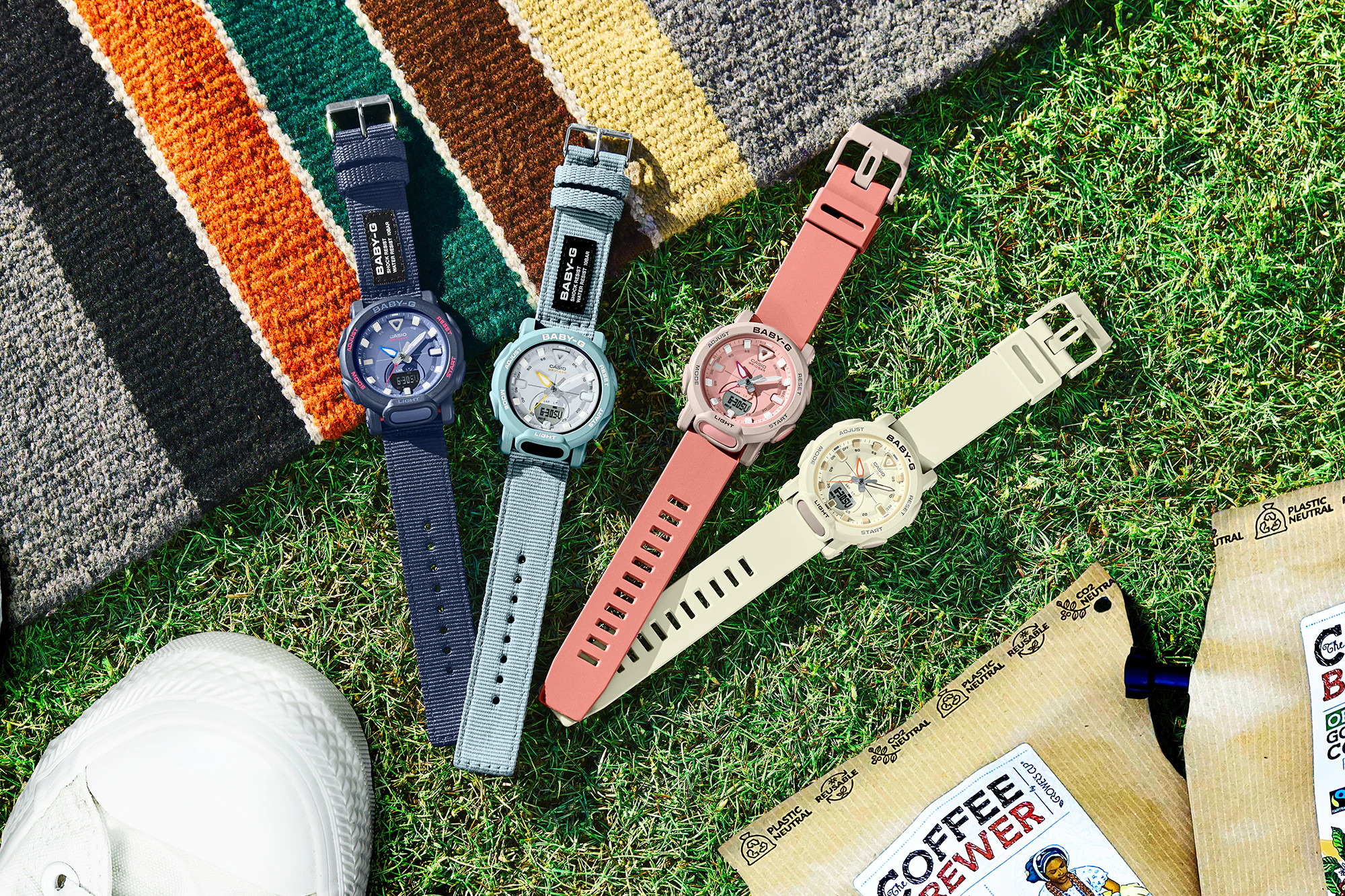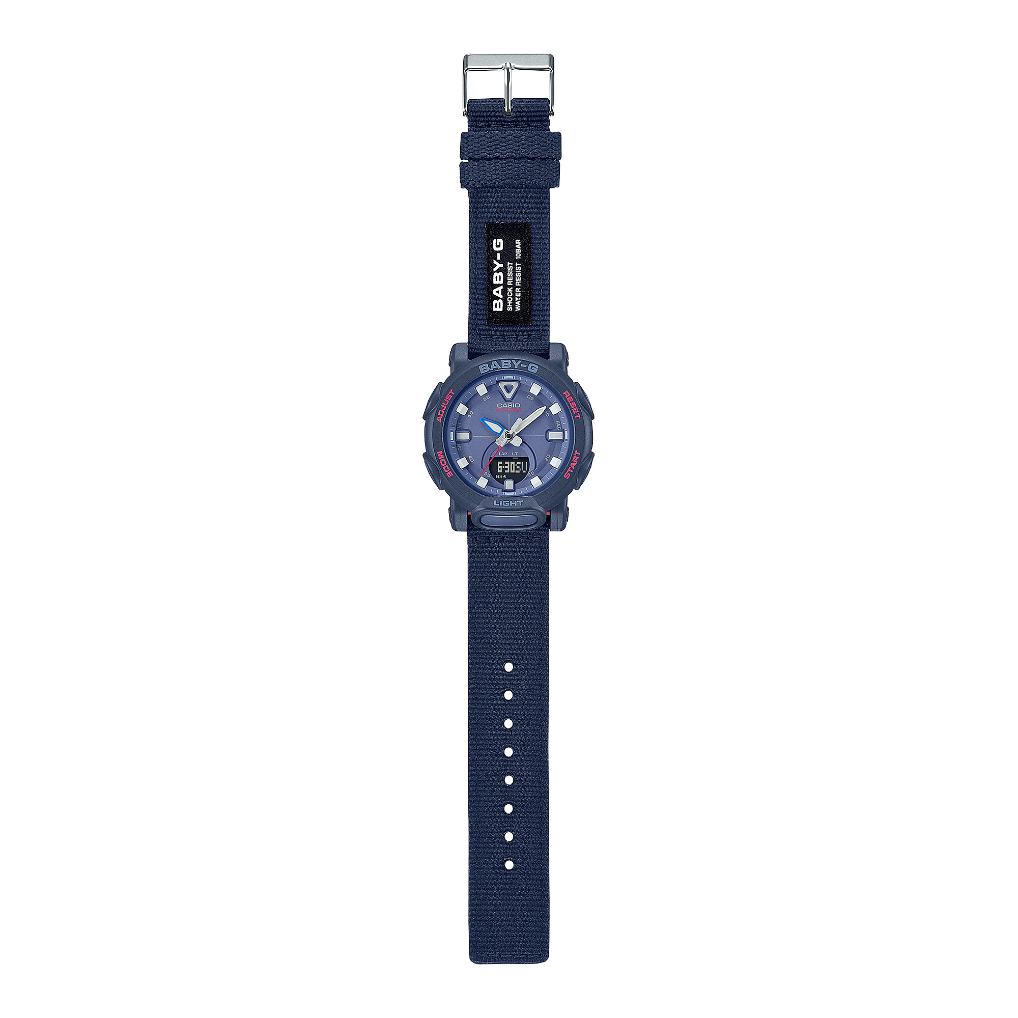 Thỏa sức ngao du ngoài trời với mẫu đồng hồ BGA-310 sành điệu và mạnh mẽ. Đồng hồ BABY-G có nhiều chất liệu khác nhau giúp bạn thể hiện tình yêu với thiên nhiên, trong đó có dây đeo bằng vải làm từ chai nhựa tái chế thân thiện với môi trường. Chiếc đồng hồ có phần vấu nối dây đeo vừa vặn phù hợp với mọi chuyển động. Ngoài ra bạn cũng có thể chọn màu xanh da trời nếu yêu thích phong cách ngoài trời. Mặt đồng hồ tròn và rộng kết hợp dây đeo lớn và vạch chỉ giờ nổi làm tôn lên vẻ ngoài nghịch ngợm và giúp bạn dễ đọc. Dây đeo màu sáng giúp hiển thị giờ rõ ràng ngay cả trong bóng tối để bạn xem nhanh hơn. Chiếc đồng hồ này còn cung cấp nhiều chức năng thực tiễn như cấu trúc chống va đập và khả năng chống nước ở độ sâu lên đến 100 mét. Nút bấm phía trước giúp bạn dễ mở đèn LED đôi chiếu sáng mặt đồng hồ và mở màn mình LCD khi đi cắm trại hoặc phiêu lưu. Bạn đang không rảnh tay? Chỉ cần nghiêng cổ tay và bật chức năng phát sáng tự động để xem giờ ngay cả trong bóng tối. Đồng hồ BABY-G giúp bạn luôn có phong cách riêng dù là khi ở nhà giữa đô thị nhộn nhịp hay đang trên đường leo núi, sẵn sàng đối mặt với mọi chuyện xảy ra trong đời sống năng động của mình.