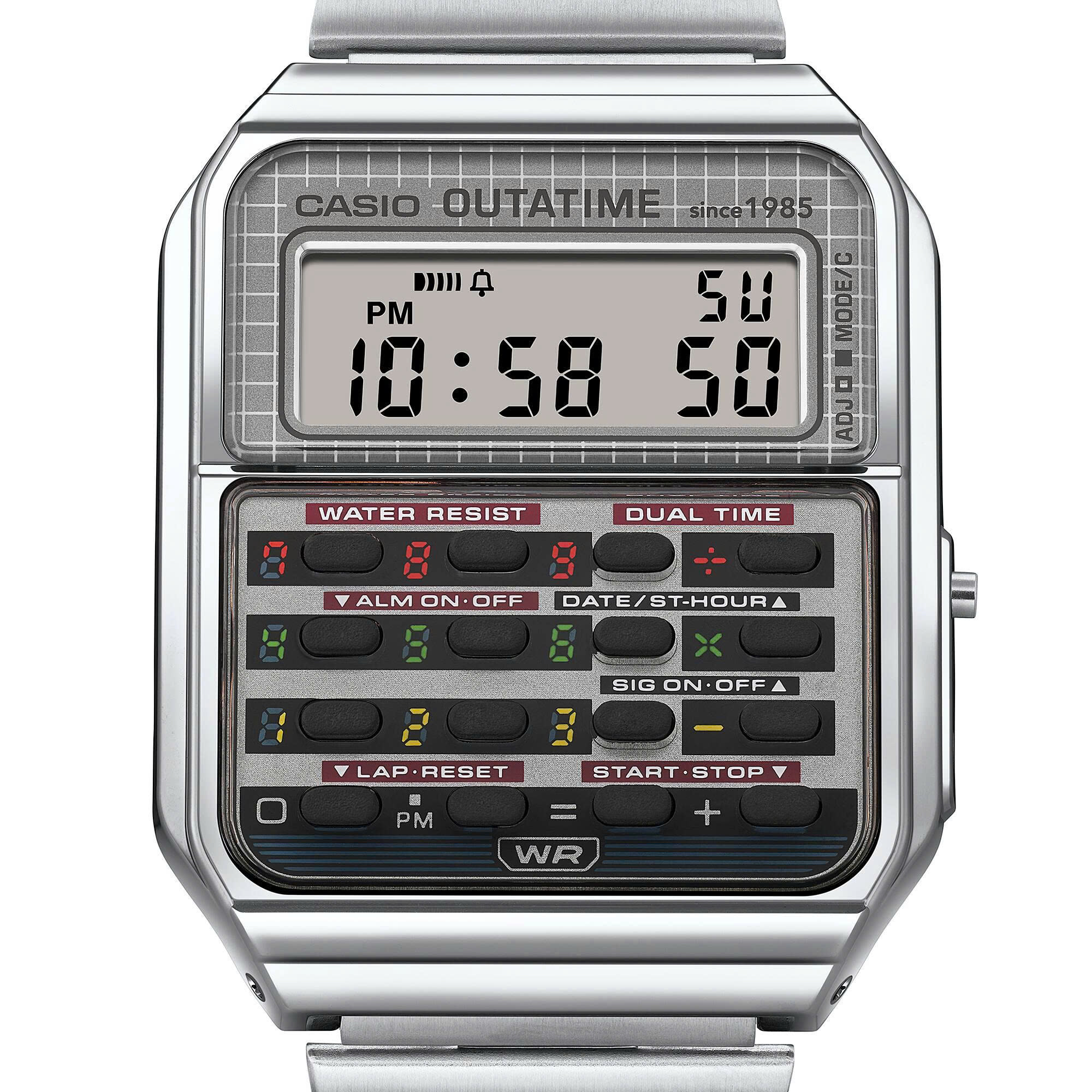 Du hành thời gian theo phong cách cổ điển đương đại! Giới thiệu về lần hợp tác trong mơ giữa Casio Vintage và bộ phim Trở về tương lai. Năm 2025 đánh dấu kỷ niệm 40 năm ra mắt bộ phim Trở về tương lai và biểu tượng vượt thời gian mà Casio Vintage góp phần kỷ niệm bằng một chiếc đồng hồ vô cùng đặc biệt, hiện thân cho cuộc phiêu lưu tương lai kinh điển này. CA-500, mẫu máy tính Casio phổ biến, được yêu thích hiện nay cũng như vào những năm 1980, có chủ đề Back to the Future DeLorean. Những màu sắc khác nhau xung quanh các nút bấm gợi nhớ đến mạch thời gian của DeLorean dùng để thiết lập ngày giờ đích đến, đưa bạn vào thế giới của bộ phim mỗi lần. Vỏ sau được khắc chìm bằng tụ điện thông lượng, một công nghệ hư cấu mang tính biểu tượng biến DeLorean thành cỗ máy thời gian. Sự kết hợp độc đáo này chứa đầy những chi tiết tỉ mỉ, chẳng hạn như logo của bộ phim Trở về tương lai trên khóa dây đeo, chắc chắn sẽ làm say lòng người hâm mộ bộ phim. Vỏ và dây đeo màu bạc mang đến vẻ ngoài tinh tế, được chào đón nồng nhiệt tại văn phòng cũng như rạp chiếu phim. Chiếc đồng hồ này có bao bì đặc biệt, được thiết kế để trông giống như một cuộn băng video cổ điển, ghi lại thế giới của bộ phim — một món đồ vô cùng đặc biệt xứng đáng với bất kỳ bộ sưu tập nào. Hãy đưa bạn đến thế giới của bộ phim Trở về tương lai với một chút tinh nghịch, mang đến cảm giác phiêu lưu thú vị cho từng phút, từng giờ và từng ngày của bạn. Trở về tương lai Ra mắt vào năm 1985, bộ phim khoa học viễn tưởng kinh điển Trở về tương lai kỷ niệm 40 năm ra mắt vào năm 2025. Được đạo diễn bởi Robert Zemeckis, với Steven Spielberg là nhà sản xuất điều hành, bộ phim kể một câu chuyện hài hước và ly kỳ về du hành thời gian và tình cảm gia đình. Trong tác phẩm kinh điển vượt thời gian được mọi lứa tuổi yêu thích này, nhân vật chính Marty McFly, do Michael J. Fox thủ vai, bước lên cỗ máy thời gian do nhà khoa học thiên tài Doc chế tạo, do Christopher Lloyd thủ vai. Khán giả say mê và hồi hộp dõi theo hành trình Marty “trở về tương lai”, chạy đua với thời gian để khôi phục lại tương lai mà anh từng biết. Ngày hôm nay, 40 năm sau, tác phẩm kinh điển trường tồn này vẫn vượt qua thử thách của thời gian, mang theo một thông điệp vượt thời gian và hy vọng cho tương lai.