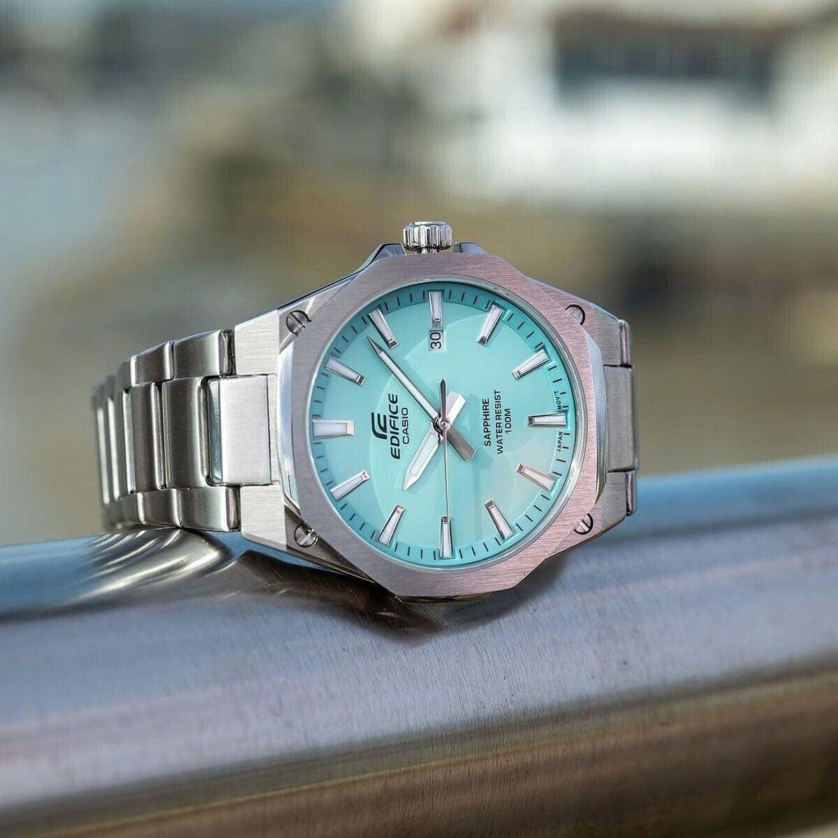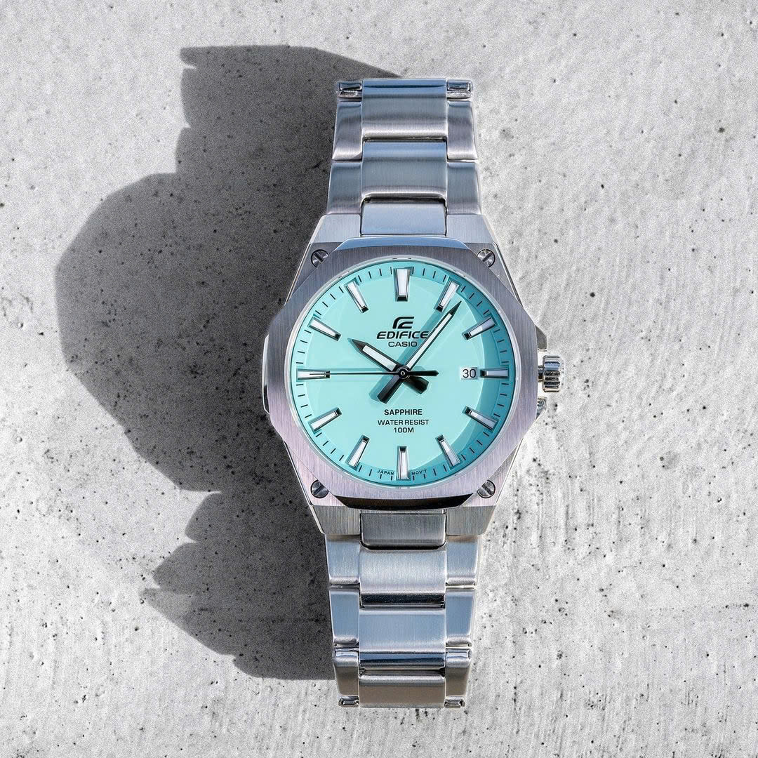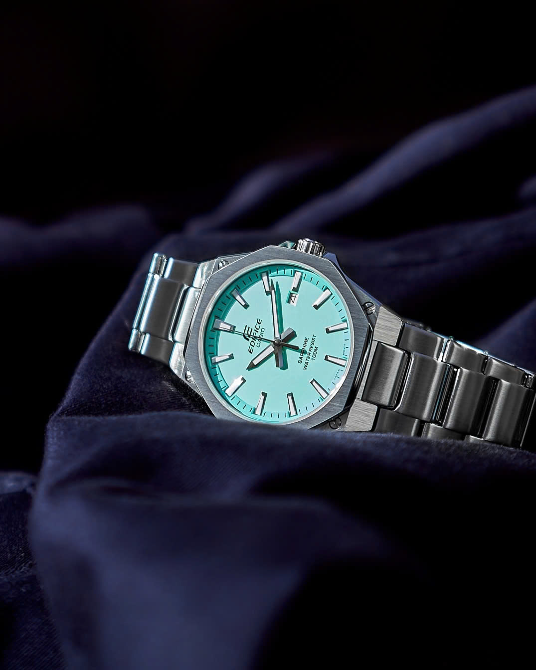 Dòng EDIFICE SLIM với mặt kính Saphia | Mẫu đồng hồ 3 kim với vỏ mỏng nhẹ chỉ 7,8 mm, mang đến sự vừa vặn tuyệt đối. Thiết kế của chiếc đồng hồ kết hợp gờ bát giác và lớp phủ đường mảnh, tạo nên sản phẩm đậm chất thể thao nhưng không kém phần sang trọng. Mặt số được đánh xước cũng mang đến cảm giác chất lượng cao. Sử dụng mặt kính saphia chống trầy xước.