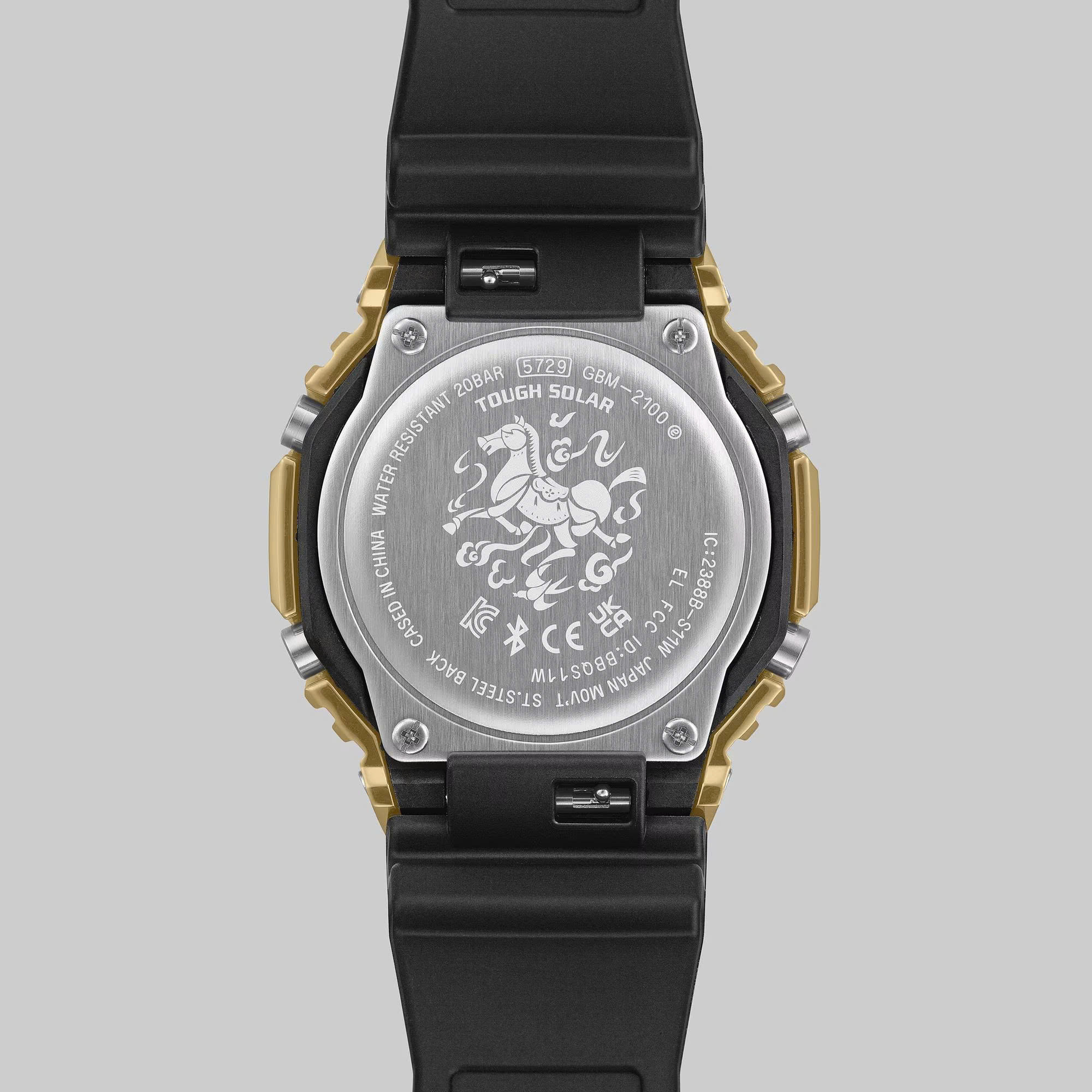 Chào đón năm 2026 thật phong cách. Hãy chào mừng năm Ngọ với mẫu đồng hồ G-SHOCK đặc biệt lấy cảm hứng từ biểu tượng mạnh mẽ của sức mạnh và vẻ đẹp — chú ngựa có cánh “nghìn dặm” huyền thoại có thể phi nước đại 500 km, hay 1.000 dặm, trong một ngày. Hình ảnh chú ngựa dũng cảm, oai vệ lướt qua mặt số, với bờm ngựa được chạm khắc tinh xảo trên gờ mạ ion màu vàng tuyệt đẹp. Kết quả là một thiết kế có chiều sâu và năng động phi thường. Các vạch chỉ giờ màu vàng tượng trưng cho sự may mắn và huy hoàng của năm mới, điểm xuyết màu đỏ đậm gợi lên sức mạnh mạnh mẽ của chú ngựa ngàn dặm. Hình ảnh minh họa chú ngựa thần thoại ở vỏ sau và trên bao bì đặc biệt hoàn thiện lễ kỷ niệm năm con ngựa đẳng cấp này. GBM-2100 được trang bị chức năng Kết nối điện thoại thông minh và Tough Solar, đồng thời vẫn giữ được kiểu dáng mỏng đặc trưng của dòng 2100. Chào đón năm mới với vẻ đẹp mạnh mẽ của một chiếc đồng hồ vừa bền bỉ vừa mang tính thẩm mỹ.