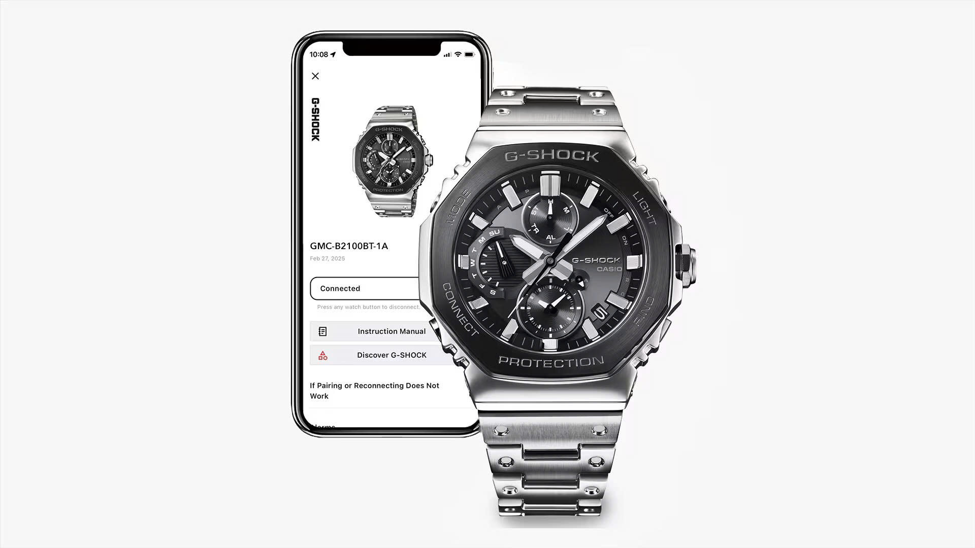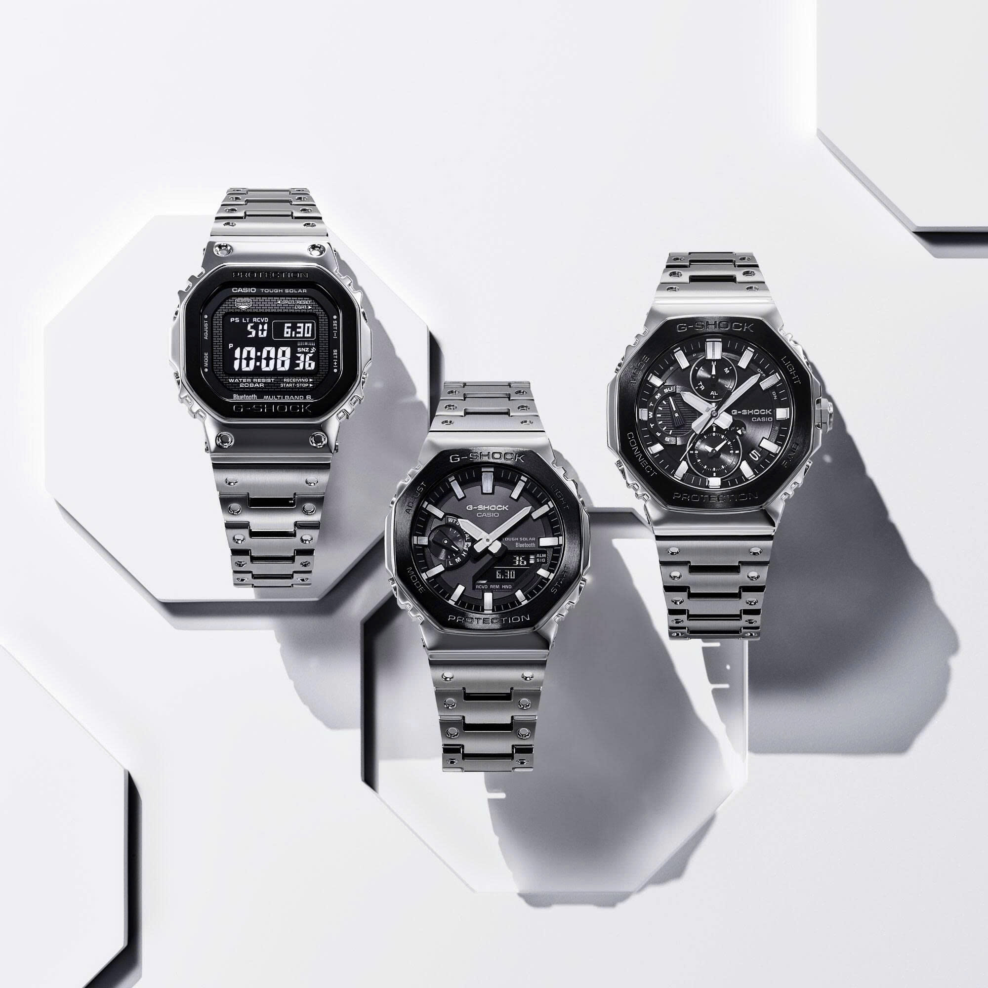 Gờ và vỏ trải qua các quá trình rèn, cắt và đánh bóng tỉ mỉ, chế tạo chúng một cách chính xác thành những hình dạng chắc chắn, mạnh mẽ. Độ lõm được áp dụng cho các bộ phận dây đeo kim loại để tái tạo hình dáng thiết kế dây đeo bằng nhựa của chiếc G-SHOCK đầu tiên.