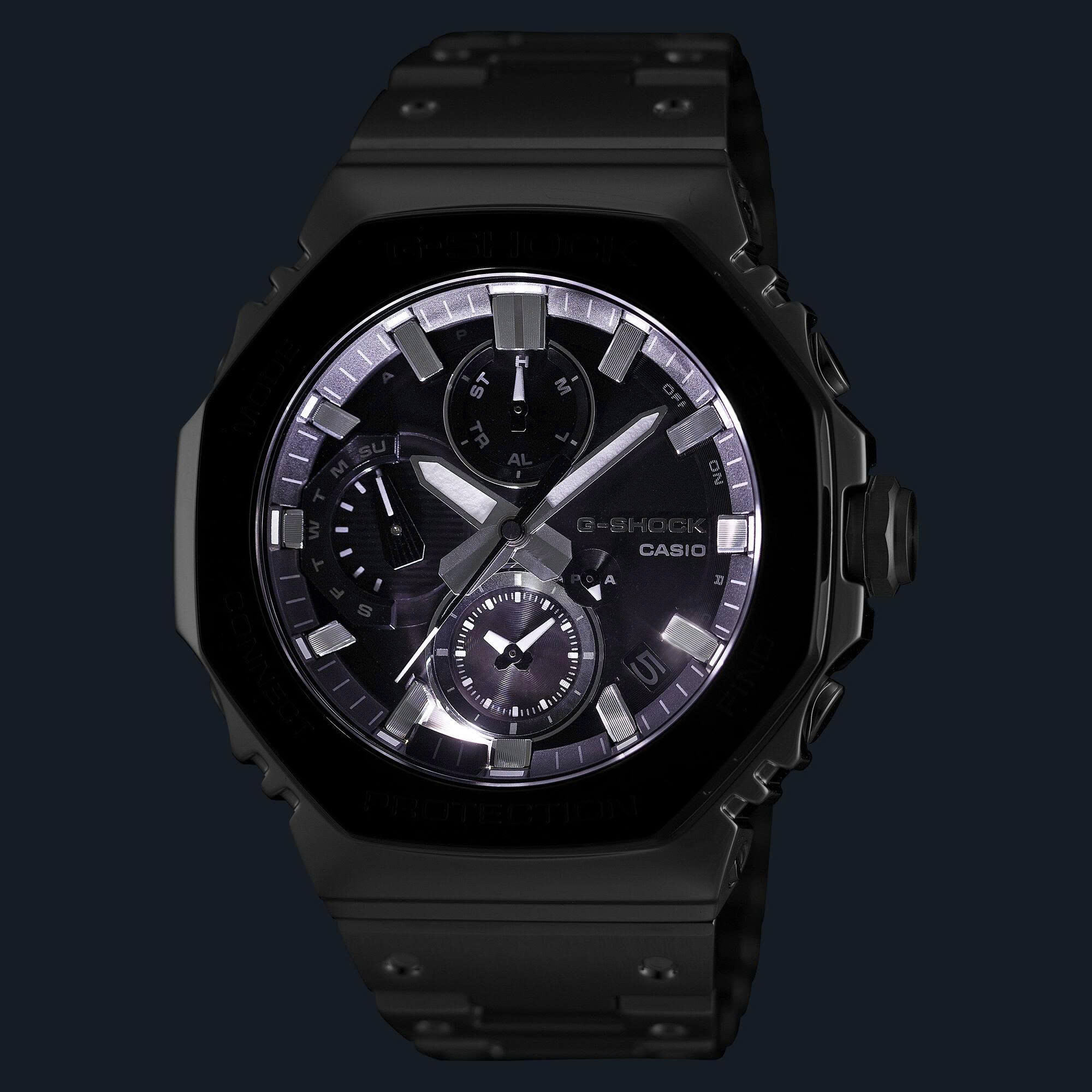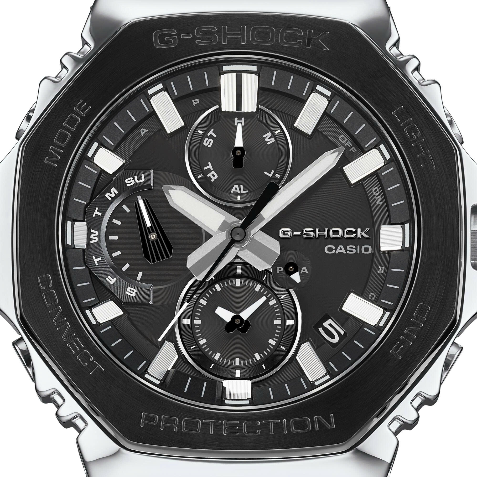Bộ sưu tập những phiên bản kế thừa hoàn toàn từ G-SHOCK đầu tiên — giới thiệu GMC-B2100 với gờ đen làm nổi bật kiểu dáng mang tính biểu tượng. Bảng phối màu hai tông đen-bạc nổi bật tôn lên vẻ mạnh mẽ của G-SHOCK trong một mẫu đồng hồ chắc chắn sẽ phù hợp với phong cách cá nhân của bạn. Gờ mặt trên của GMC-B2100BT được hoàn thiện bằng đường nét mảnh, toát lên vẻ sang trọng cao cấp của kết cấu kim loại tinh xảo. Các vạch chỉ giờ được hoàn thiện bằng kỹ thuật lắng đọng hơi màu bạc giúp tăng cường khả năng hiển thị và tạo nên sự tương phản tuyệt đẹp với mặt số. Được chế tạo từ thép không gỉ, gờ trải qua các quy trình rèn, cắt và đánh bóng tỉ mỉ để đạt được độ sâu và kích thước hoàn thiện tinh tế. Để đạt được cấu trúc chống va đập nguyên bản của G-SHOCK trong một chiếc đồng hồ hoàn toàn bằng kim loại, các bộ phận đệm làm bằng nhựa mịn được chèn vào giữa gờ và vỏ bằng thép không gỉ. Và các chi tiết dây đeo kim loại được tạo hình lõm để tái tạo diện mạo của thiết kế dây đeo bằng nhựa G-SHOCK đầu tiên. Và thực tế là chiếc đồng hồ này được chế tác tại Yamagata Casio, “nhà máy chính” nơi sản xuất chiếc đồng hồ G-SHOCK đầu tiên, đã đưa toàn bộ thiết kế trở lại trạng thái hoàn hảo.