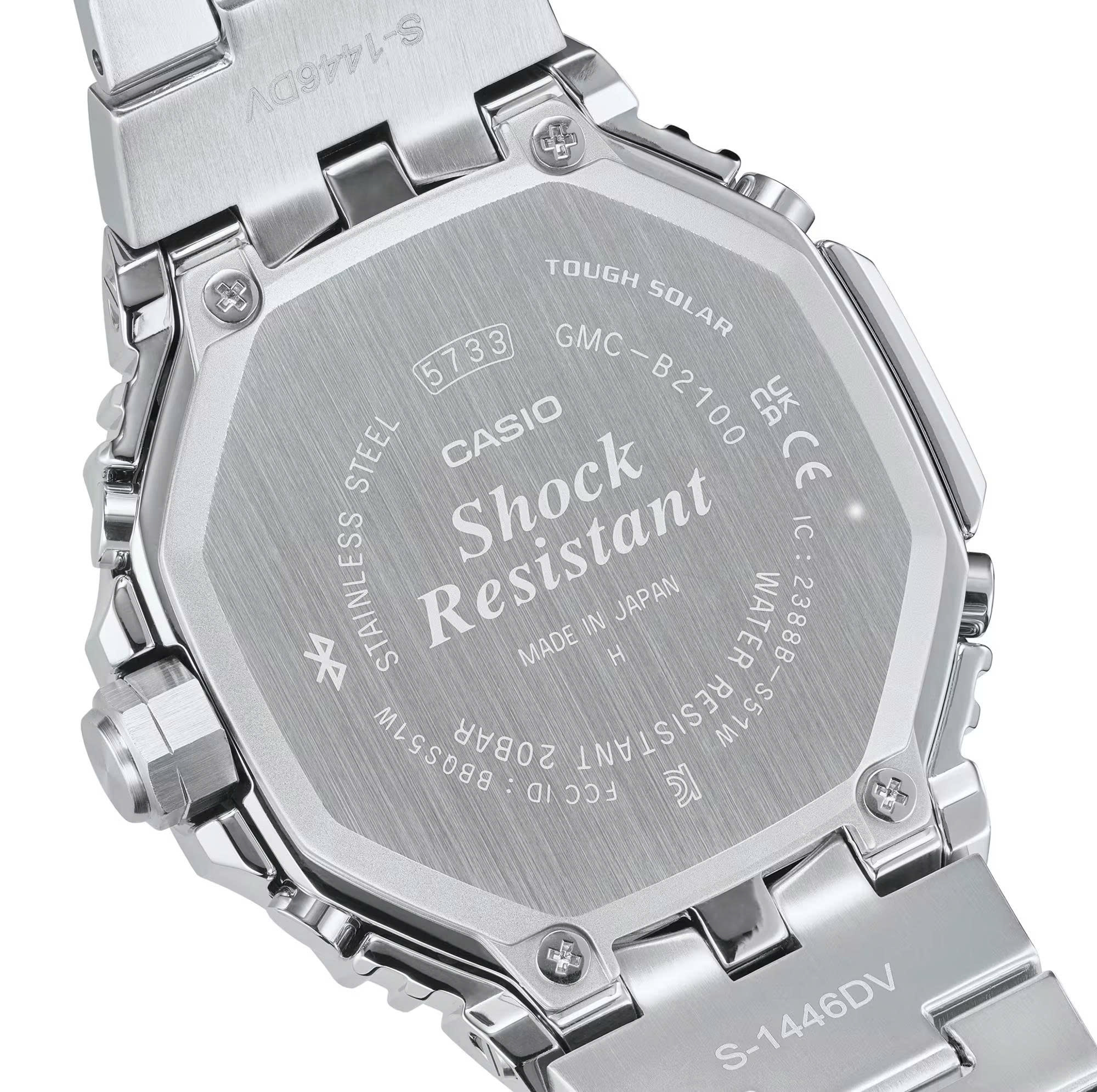 Các bộ phận đệm có khả năng chống sốc làm từ nhựa resin chất lượng cao, được đưa vào giữa đường gờ bằng thép không gỉ và vỏ đồng hồ. Cấu trúc chống sốc được duy trì kể từ chiếc G-SHOCK đầu tiên được tạo ra trong một chiếc đồng hồ có vỏ ngoài bằng kim loại. Bên cạnh đó, các vấu trên vỏ có cấu trúc ba ngạnh được sử dụng cho phần liên kết của dây đeo để phân tán va đập vào ống nối. Chỉ có mặt sau của GMW-B5000BT và GM-B2100BT có cấu trúc khóa vặn để đảm bảo độ kín khí.