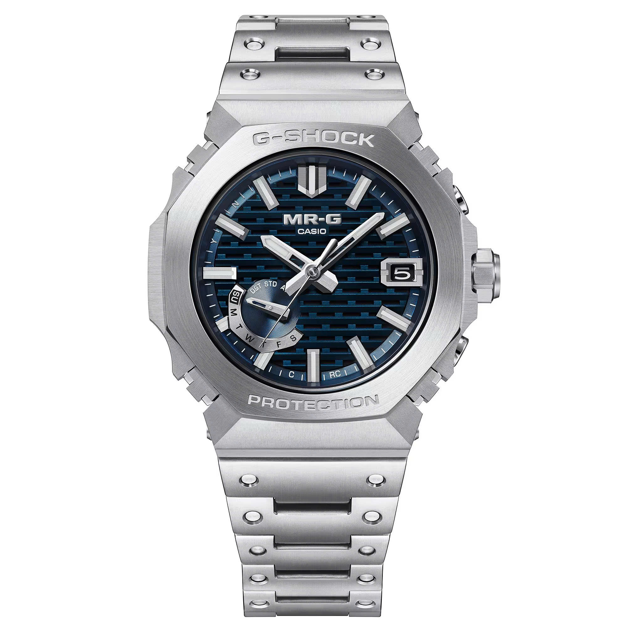 Đắm mình trong sự tĩnh lặng màu xanh xám bình minh của ngôi chùa cổ nhất vùng Tohoku. Hãy tự mình trải nghiệm tinh thần vượt thời gian, chân thực của chiếc đồng hồ MR-G-B2100R-2A, lấy cảm hứng từ kho báu quốc gia này — nằm ẩn mình trong khu rừng Yamagata, quê hương của nhà máy Casio, nơi những chiếc đồng hồ MR-G được chế tác tỉ mỉ. Chiếc đồng hồ tinh tế này tái hiện hình ảnh ngôi chùa năm tầng trên núi, lặng lẽ chìm trong sương sớm, ghi lại vẻ đẹp của nó trong màu xanh hanada-iro truyền thống của Nhật Bản trên mặt số. Màu xanh dương trong veo thay đổi sắc thái tùy thuộc vào ánh sáng và góc nhìn, như đang thì thầm về sự trôi chảy huyền bí của thời gian. Mặt số, lấy cảm hứng từ kỹ thuật ghép gỗ truyền thống của Nhật Bản gọi là kigumi, gợi lên sức mạnh và phẩm giá vượt thời gian; kết hợp với thiết kế hanada-iro, mang đến một chút vẻ thanh lịch, nhẹ nhàng cho cổ tay của bạn. Gờ hình bát giác đặc trưng của dòng 2100, một phong cách mang tính biểu tượng của G-SHOCK, được làm từ các vật liệu kim loại được lựa chọn kỹ lưỡng và hoàn thiện tỉ mỉ. Thiết kế tinh xảo, chất lượng cao với vỏ và gờ được cấu tạo từ 27 chi tiết khác nhau — mỗi chi tiết đều được đánh bóng tỉ mỉ để tạo nên vẻ ngoài và cảm giác tuyệt vời đến từng chi tiết. Chúng tôi tận dụng tối đa vật liệu kim loại để tạo ra lớp hoàn thiện tráng gương siêu mịn tuyệt đẹp và áp dụng lớp phủ titan cacbua (TiC) để chống trầy xước tốt hơn nữa. Cấu trúc nhiều lớp bảo vệ hiện đại kết hợp các bộ đệm giữa các bộ phận để đảm bảo khả năng hấp thụ va đập vượt trội và độ bền cao hơn nữa. Là một kiệt tác thực sự trong nghề chế tác kim loại, vành bezel phía trên được làm từ COBARION®,1 hợp kim có độ cứng gấp bốn lần titan nguyên chất và có ánh sáng chói như bạch kim.