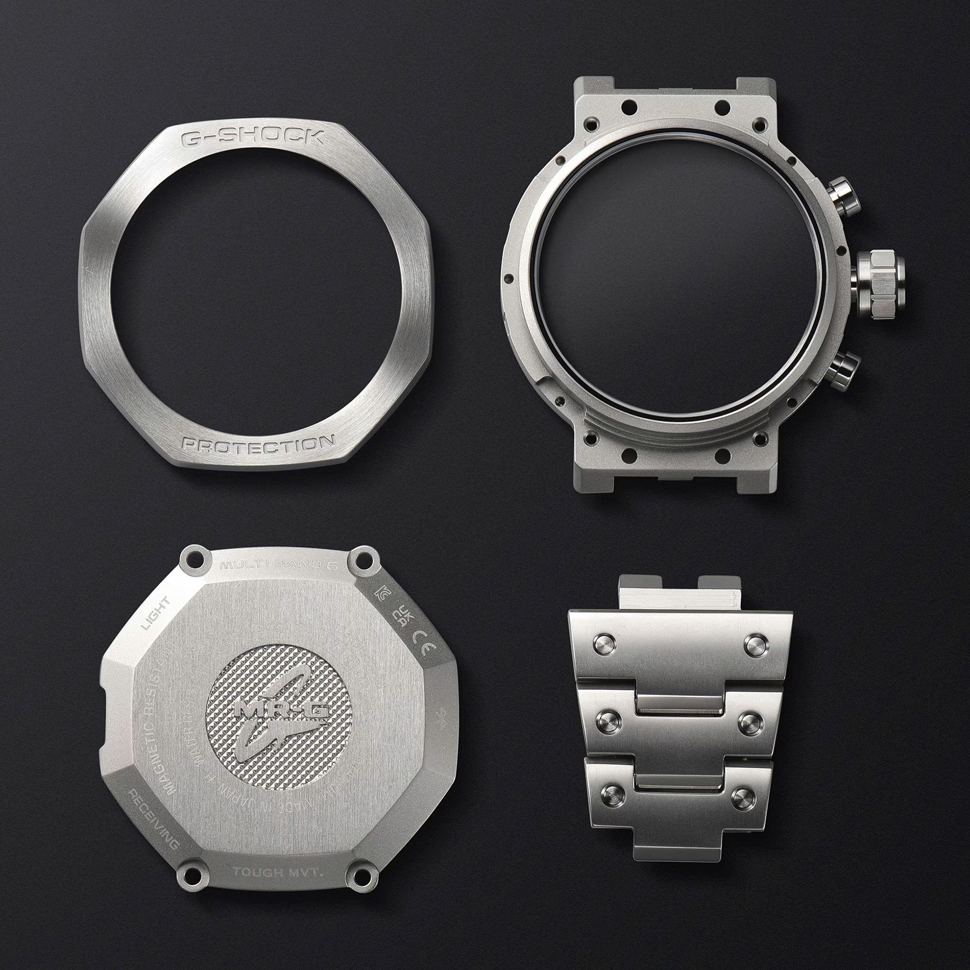 Dây đeo được làm bằng một hợp kim đặc biệt khác, DAT55G,2 một hợp kim titan siêu cứng nhưng vẫn dễ gia công, trong khi vỏ và gờ sử dụng hợp kim titan siêu cứng Ti64. Mặt số có các họa tiết hình học được tạo ra bởi các đường gờ lượn sóng và các lỗ nhỏ lấy cảm hứng từ kigumi, gợi lên thế giới tuyệt đẹp của nghệ thuật đan lưới. Những khe hở nhỏ trên mặt số đan lưới cho phép đủ ánh sáng xuyên qua để tạo ra năng lượng mặt trời giúp bạn luôn nắm bắt được thời gian. Nghệ thuật truyền thống này được phản ánh trong cấu trúc hai phần được lắp ráp tinh xảo của vạch chỉ 12 giờ, kết quả của quá trình sản xuất chính xác cao nhất mà chỉ Yamagata Casio mới có thể thực hiện bằng công nghệ xử lý nano của mình. Kiệt tác này không chỉ là một sự tôn vinh lộng lẫy của kim loại cao cấp. Kiệt tác còn mang đến chức năng vượt trội với khả năng hiệu chỉnh được điều khiển bằng sóng vô tuyến và ghép nối điện thoại thông minh qua Mobile Link. Mô-đun MR-G độc quyền còn có cả tấm kẹp mạ vàng để giảm điện trở. *1 COBARION® là nhãn hiệu đã đăng ký của Trung tâm Xúc tiến Công nghiệp Iwate và được sản xuất độc quyền bởi Eiwa Co., Ltd.