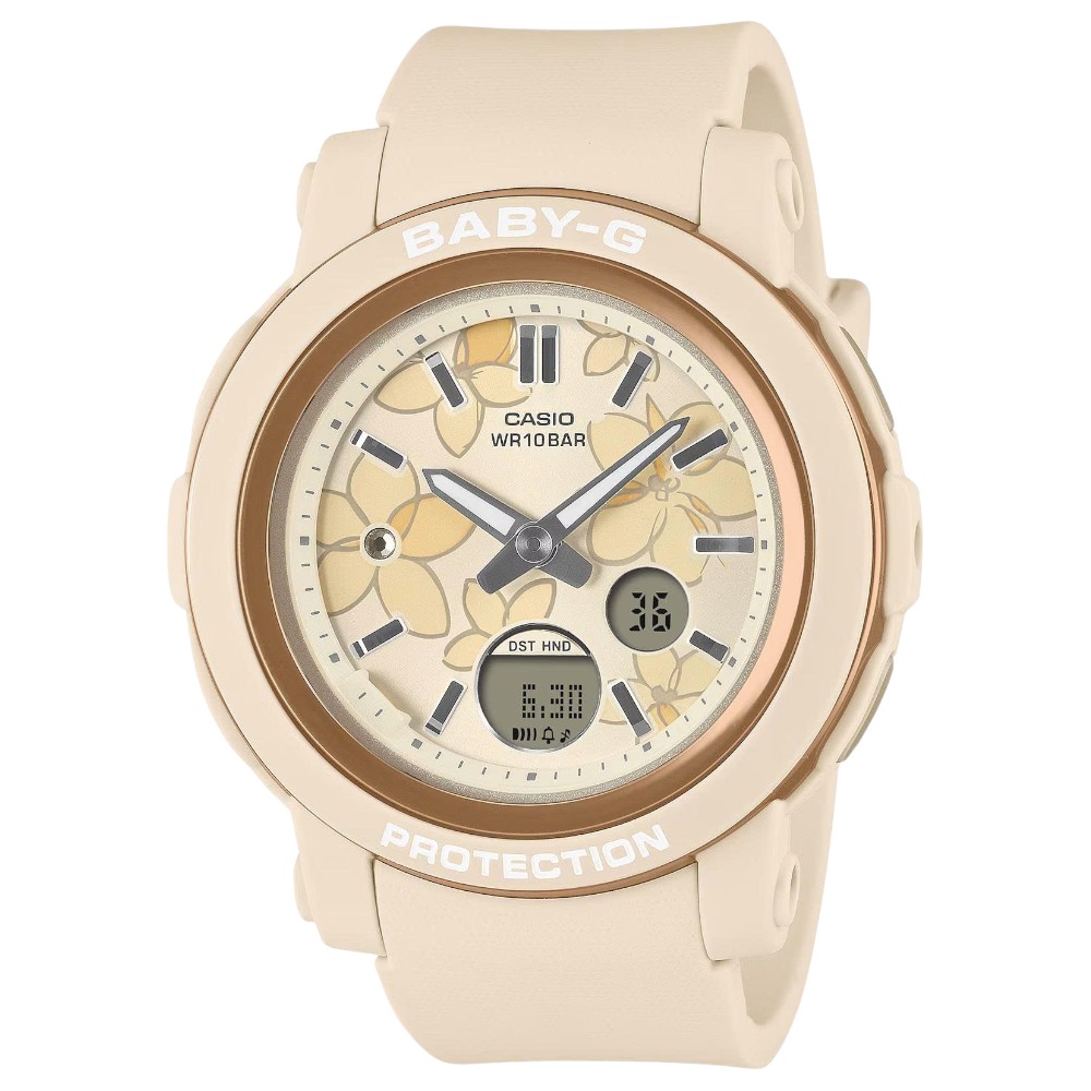 Phong cách giản dị, bền bỉ năng động — một chiếc BABY-G chống va đập khoác lên mình những bông hoa tinh tế, xinh xắn và mạnh mẽ. BGA-290, với vỏ tròn và mặt đồng hồ rộng cho khả năng đọc tối ưu, sở hữu mặt số được trang trí họa tiết hoa thanh lịch, mang đến nét quyến rũ cho cổ tay bạn. Một viên pha lê ở giữa bông hoa tại vị trí vạch chỉ số 9 giờ càng thêm lấp lánh, trong khi lớp hoàn thiện lắng đọng hơi nước của vòng gờ mang lại kết cấu kim loại tuyệt đẹp. Về chức năng, BGA-290FL sở hữu cấu trúc chống va đập, khả năng chống nước ở độ sâu 100 mét giúp bạn an tâm khi bơi lội, cùng nhiều tính năng khác.